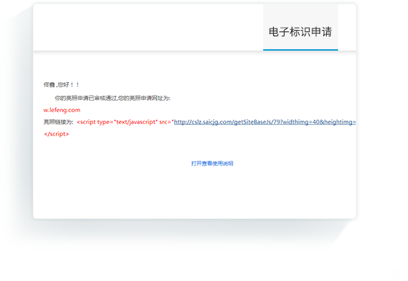 • 可按照郵件的使用說明,將電子標(biāo)識添加到網(wǎng)站首頁下方的醒目位置